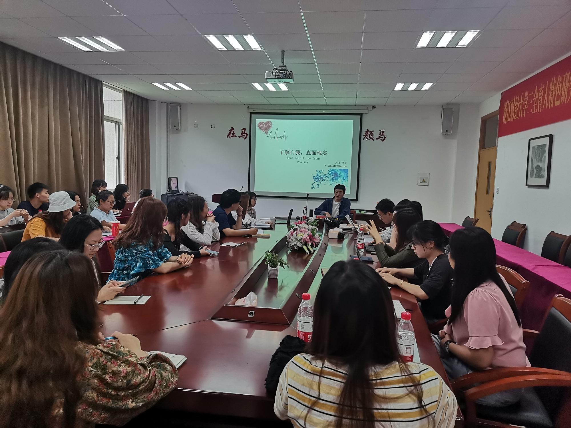 5月12日,直播足球比分 于3号楼211会议室举办了“了解自我,直面现实”的心理学交流分享会,主讲人是青年博士周浩。直播足球比分 辅导员王瑜,班主任杨晓帆、李芳园、程能的,研一研二全体学生参加了此次分享会。 分享会伊始,周浩博士点明此次会议的主题:人生中面临许多冲突,背后的...