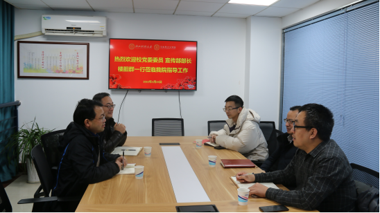 2月23日下午,校党委委员、宣传部长楼胆群一行莅临足球比分90 调研指导“三全育人”特色研究院建设等工作。直播足球比分 领导贺武华、刘向前参加座谈。贺武华院长重点汇报了校领导上思政课、“三全育人”特色研究院工作以及思政教育阵地场馆建设等方面的工作思路、主要成效以及遇到的实际困难。楼胆群部长对直播足球比分 发展...