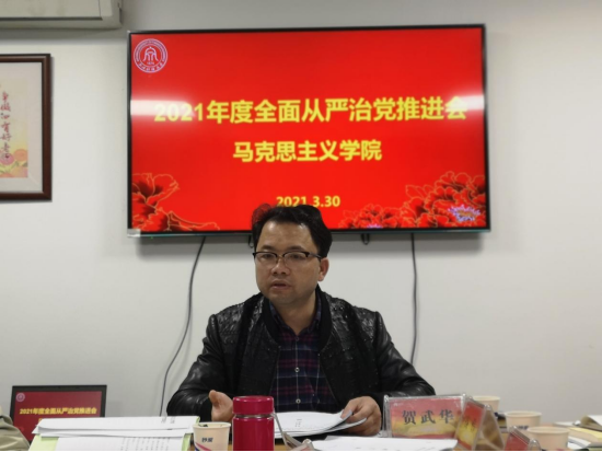 3月30日下午,马克思主义学院召开2021年全面从严治党推进会。院全体党政班子成员、纪委委员、党支部书记参加了此次会议。学院党委书记、院长贺武华首先传达和解读了中央纪委第五次全会精神、省纪委第六次全会精神、教育系统全面从严治党工作会议精神等文件。
