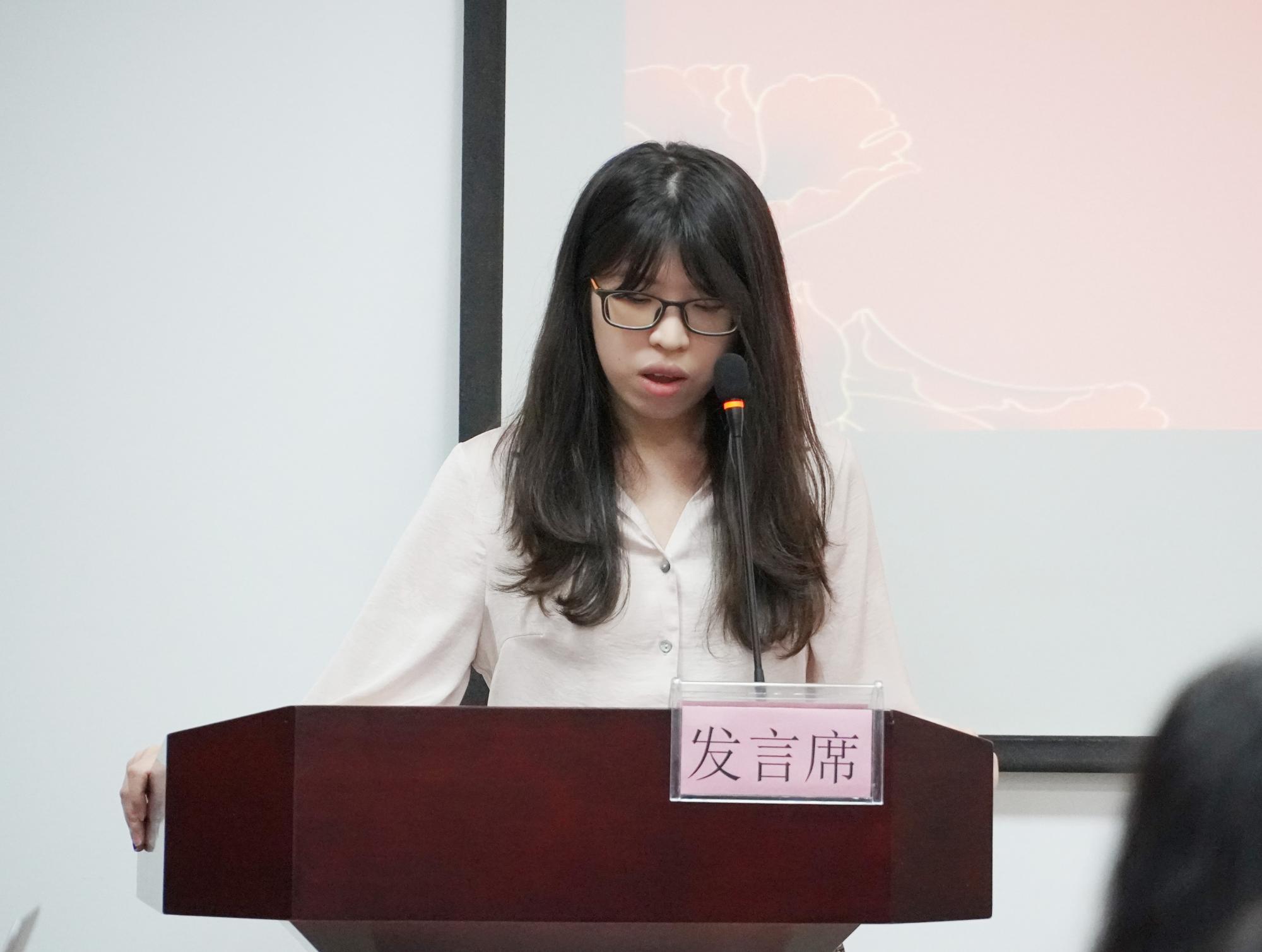 金梦佳博士作为新进教师的代表进行发言,她首先谈了作为新老师的些许感悟,同时代表各位新老师传达了对直播足球比分
