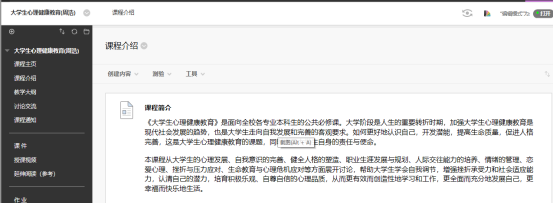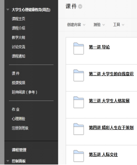 周浩老师在教学安排上采用中国大学MOOC平台的慕课资源,同时借助QQ群、校内BB平台等辅助工具进行在线授课,有针对性地在BB平台上建立心理学分享空间,包括课程介绍、教学大纲、课件、授课视频、延伸阅读、作业、心理测验等资料,为学生提供了良好的在线学习环境。考虑到过度冗长的资料会让学生处在信息流的汪洋之中,所有心理课程资料的分享将以适度合理为首要原则,有计划有安排地逐步上传发布,全力配合课程的进度。