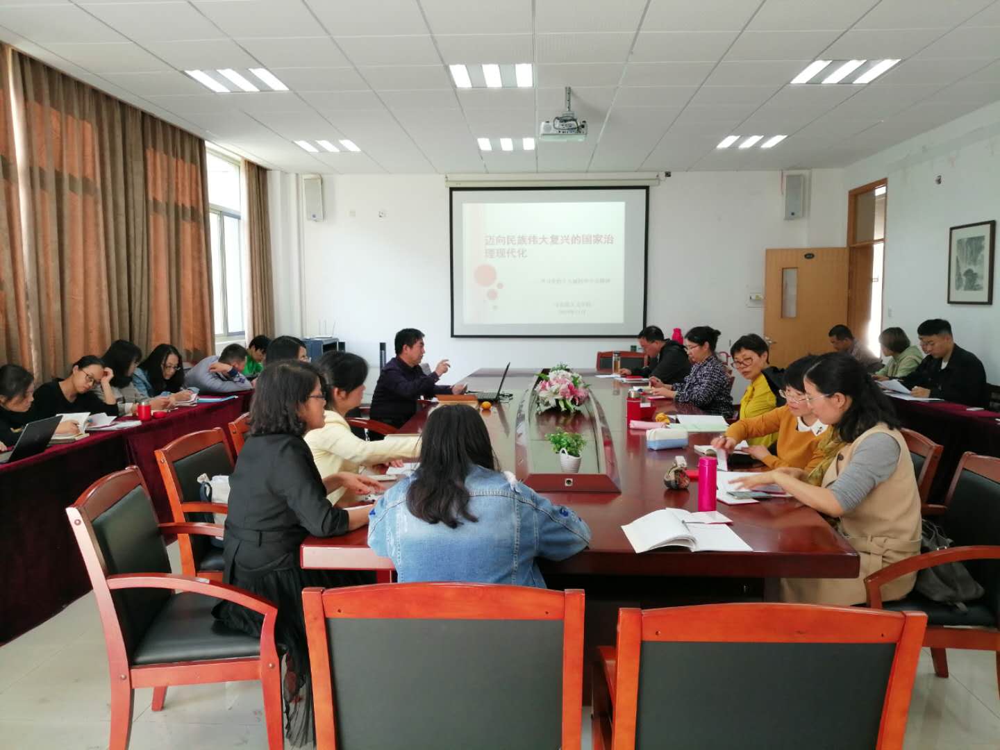 党委书记华正学老师为大家上了一堂题为“迈向民族伟大复兴的国家治理现代化”的专题党课。