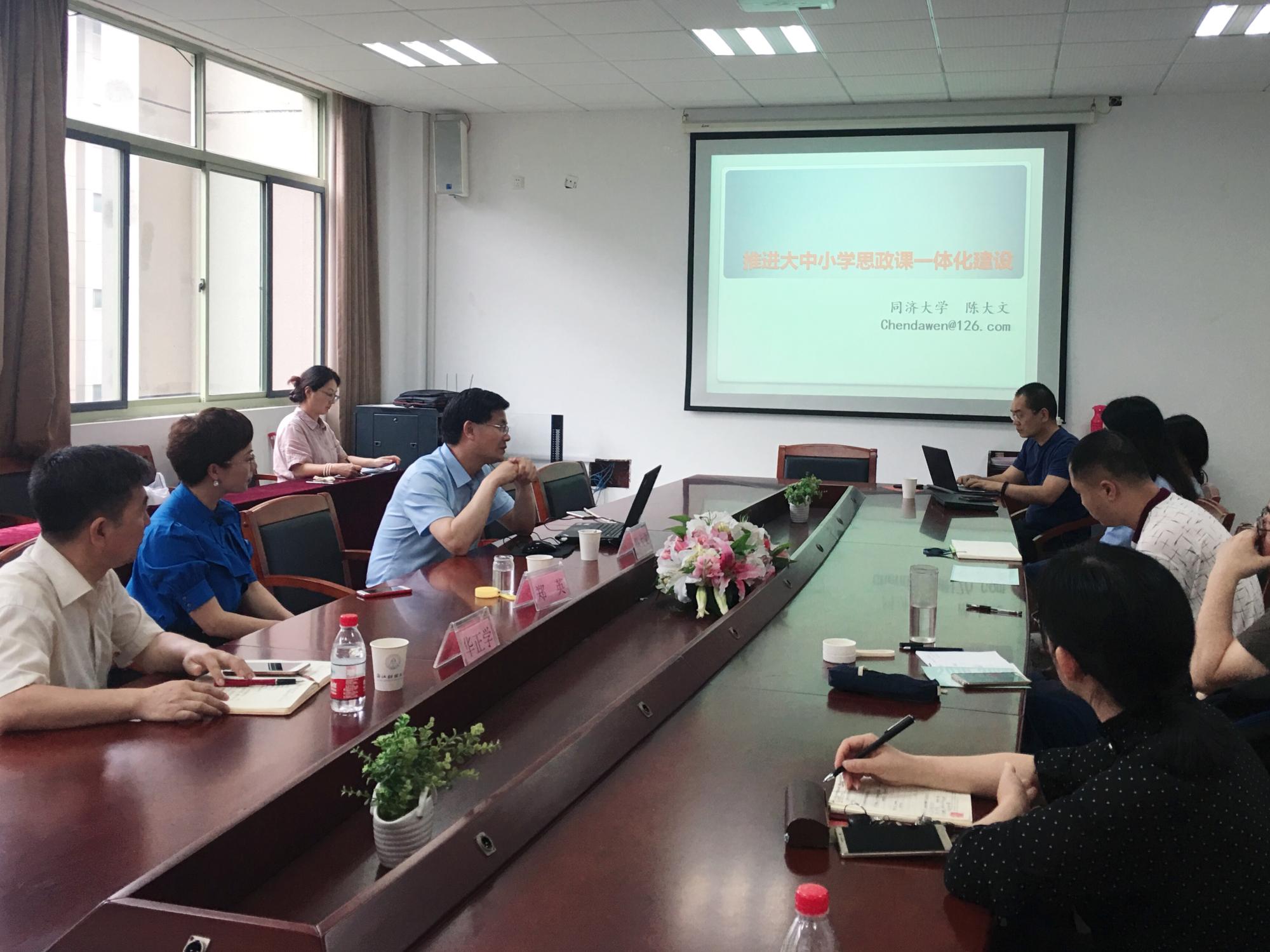在听完郑老师的报告后,来自同济大学的陈大文老师十分赞赏郑老师的教育教学方式。他表示,郑老师与学生相处的方式正是教师亲和力的生动体现。他指出当前我们教师的一个很大不足,就是对我们的教学对象——学生,了解得不够深入,很大程度上不了解他们喜欢的教学方式。因此,作为新时代的思政课教师,我们需要“推进大中小学思政课一体化建设”,这也正是陈老师此次报告的主旨所在。陈老师从六个层面阐述了推进一体化建设的具体措施:1.在大中小学循序渐进,螺旋式上升地开设思想政治理论课。以爱国主义为例,他指出了当前思政课教育中这类教育出现的重复性,以及停留在感性认识层面的问题。2.办好思想政治理论课关键在教师,即习近平总书记“3.18”讲话中提到的“六要”要求。3.大思政课的格局。4.思想政治理论课建设的基础和底气。5.规律性认识和成功经验。6.正是思想政治理论课建设问题。通过对一体化建设的系统梳理,陈老师给老师们呈现了未来思政课教育改革的方向和趋势,为老师们进一步认识思政课的本质、存在的不足以及需要提升的地方有了更加详细深入的认识。接着,陈老师就“2019年度国家社科基金高校思想政治理论课研究专项申报”,对申报指南进行了全方位的深入解读,为老师们在申报课题方面梳理了要点,理清了思路,传递了经验,减少了疑惑。