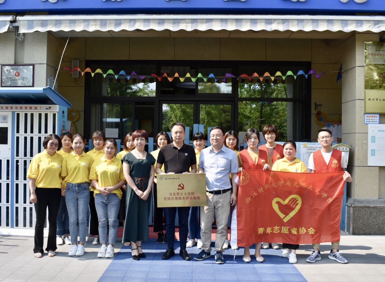 院长助理高伟老师、启智幼儿园董事长朱杰敏、园长张丽莉、马院青协会长陈依苗、副会长王静、副会长乔晓磊、研究生会文体部部长周晨慧及相关教师参与本次仪式。