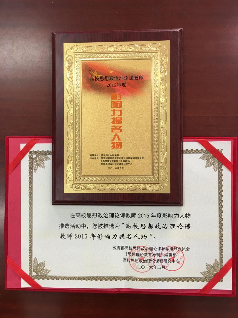 教师历来都把立德树人、教书育人放在教学、科研工作的首位。2016年,有1人次荣获“全国高校思想政治理论课教师2015年影响力提名人物”,这是我校教师在本项活动评选中第一次获奖。