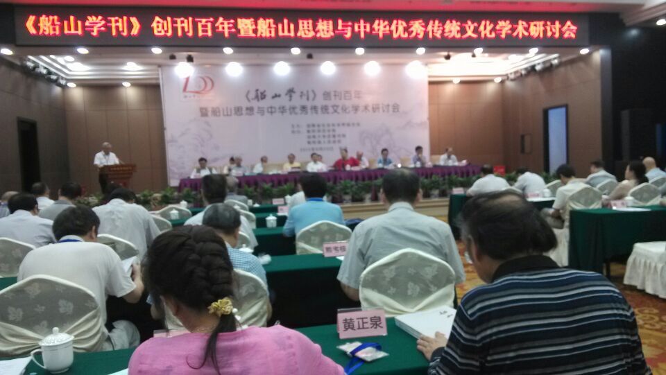 《船山学刊》创刊百年暨船山思想与中华优秀传统文化学术研讨会于 2015 年 8 月 20 日 在长沙召开。武汉大学国直播足球比分 院长郭齐勇、中国伦理学会副会长唐凯麟、北京大学哲学系教授张学智、南京大学哲学系教授杨明、中国人民大学哲学系教授肖群忠等100余名专家学者就船山研究和《船山学刊》发展进行了深入探讨。我部彭传华副教授应邀参加了会议,为大会提交了论文并作了分会场的论文宣读,得到了不少专家学者的好评。