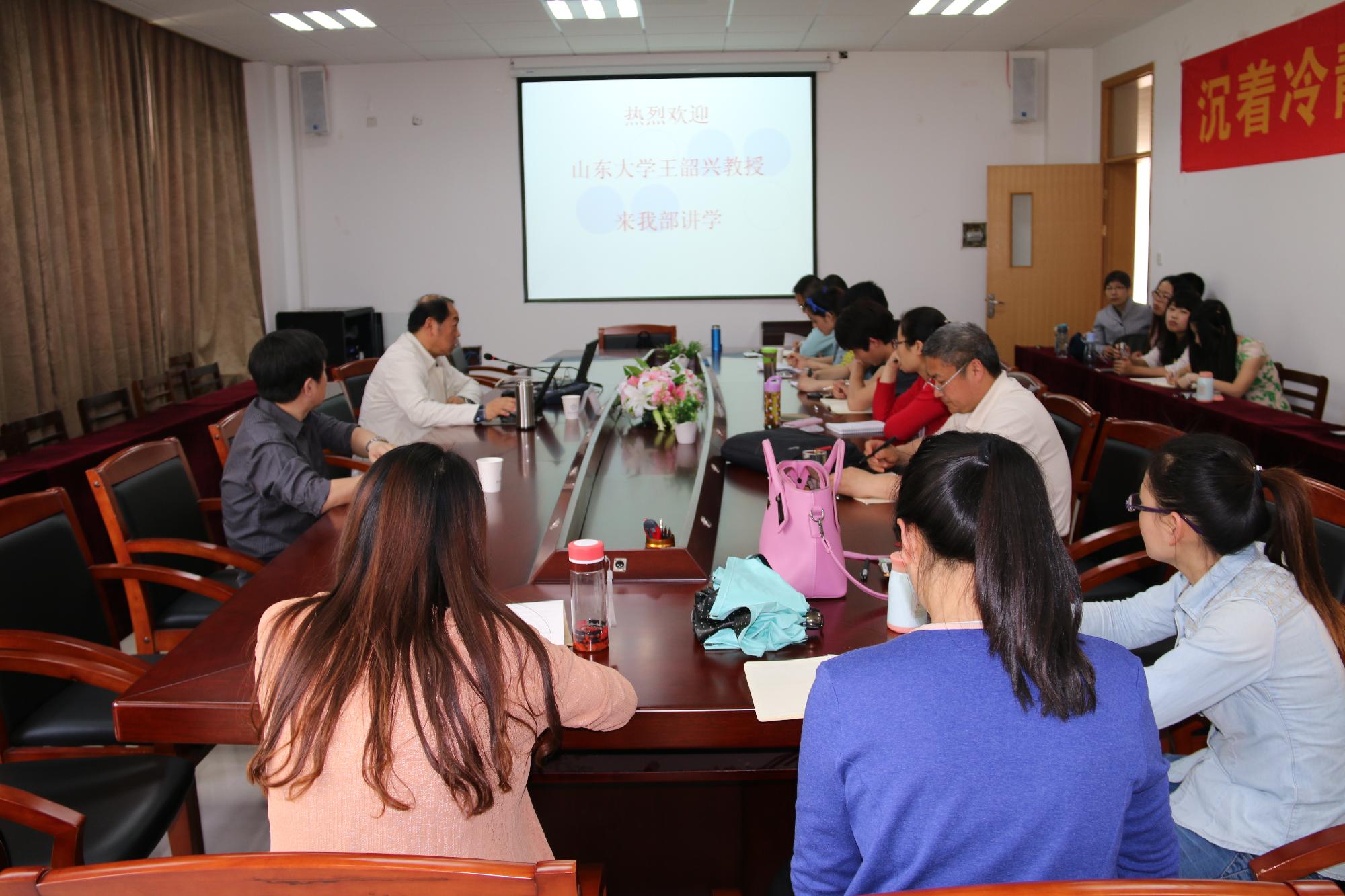院长,国内外知名学者王绍兴教授应邀来我校作了题为“国家治理现代化视域下的党的建设问题研究”讲座,讲座由思政部主任华正学教授主持。我部相关专业的教师和硕士研究生30余人参加了此次讲座。