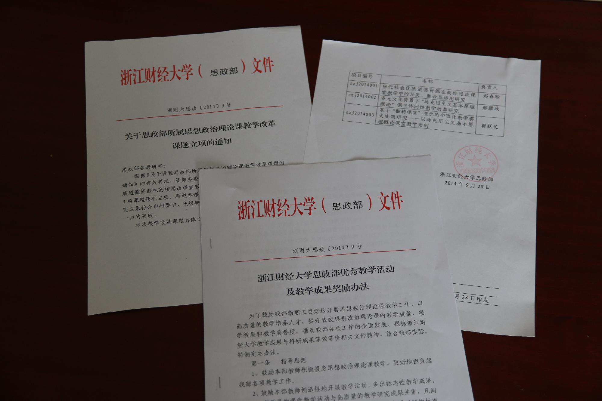 6、教学改革取得新进展。2014年12月,我部教学改革工作获得省意识形态督导组专家的好评。自部门独立设置以来,我部不断加大教学改革工作的力度,已经形成了以制度保障和政策激励为前提,以教师自我探索为基础,在申报成功高级别、层次课题的平台上,大胆探索思想政治理论课教学改革并取得较好教学效果的良性循环。