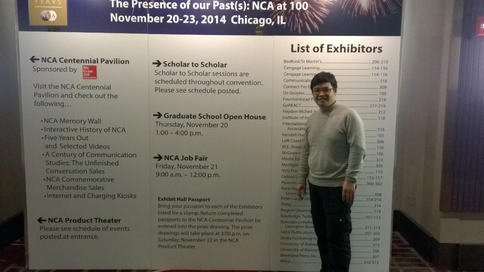 2014年11月20日至23日,美国传播协会(NCA)100周年大会在美国芝加哥召开,我部教师郑根成教授参加大会。