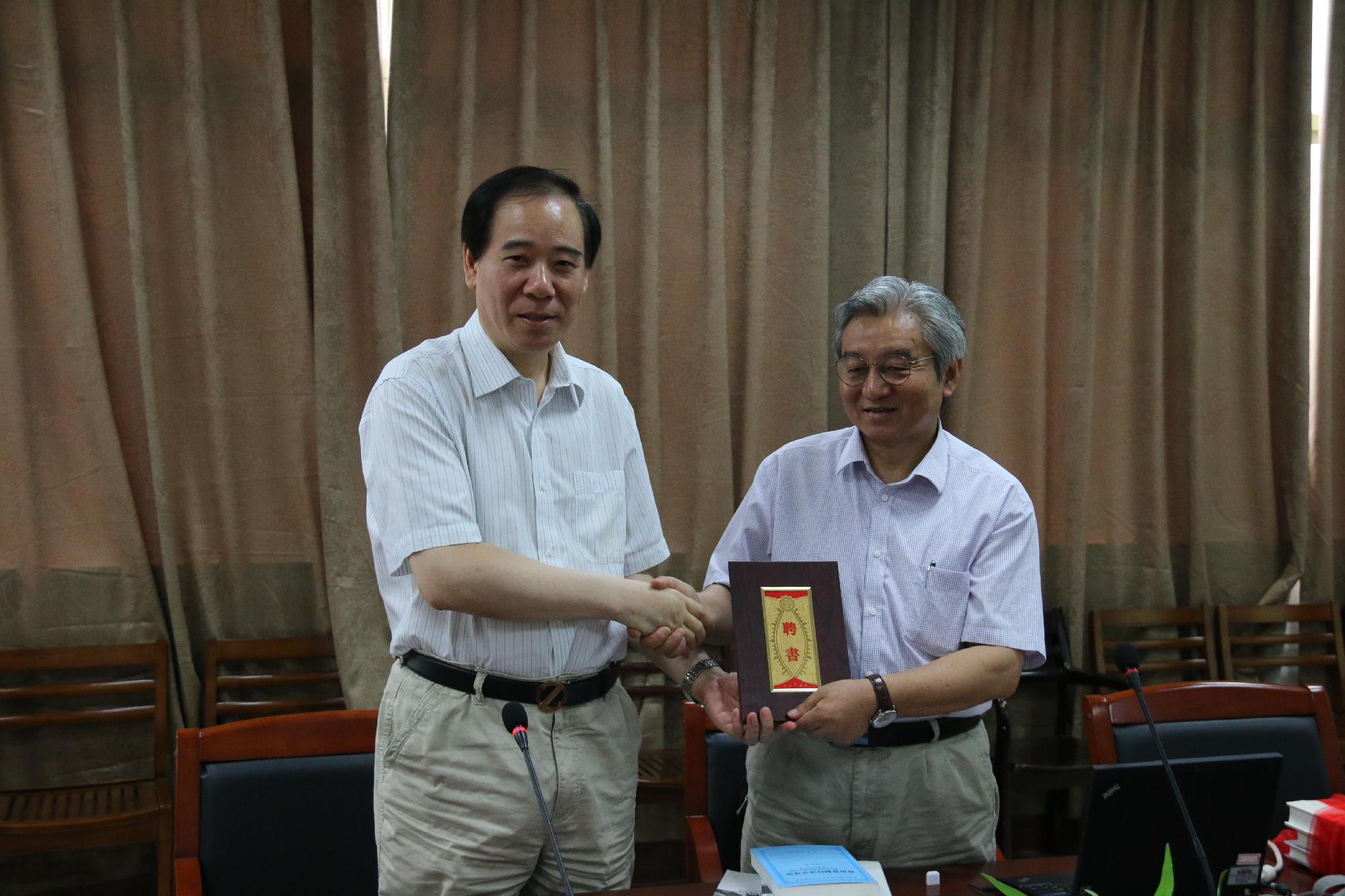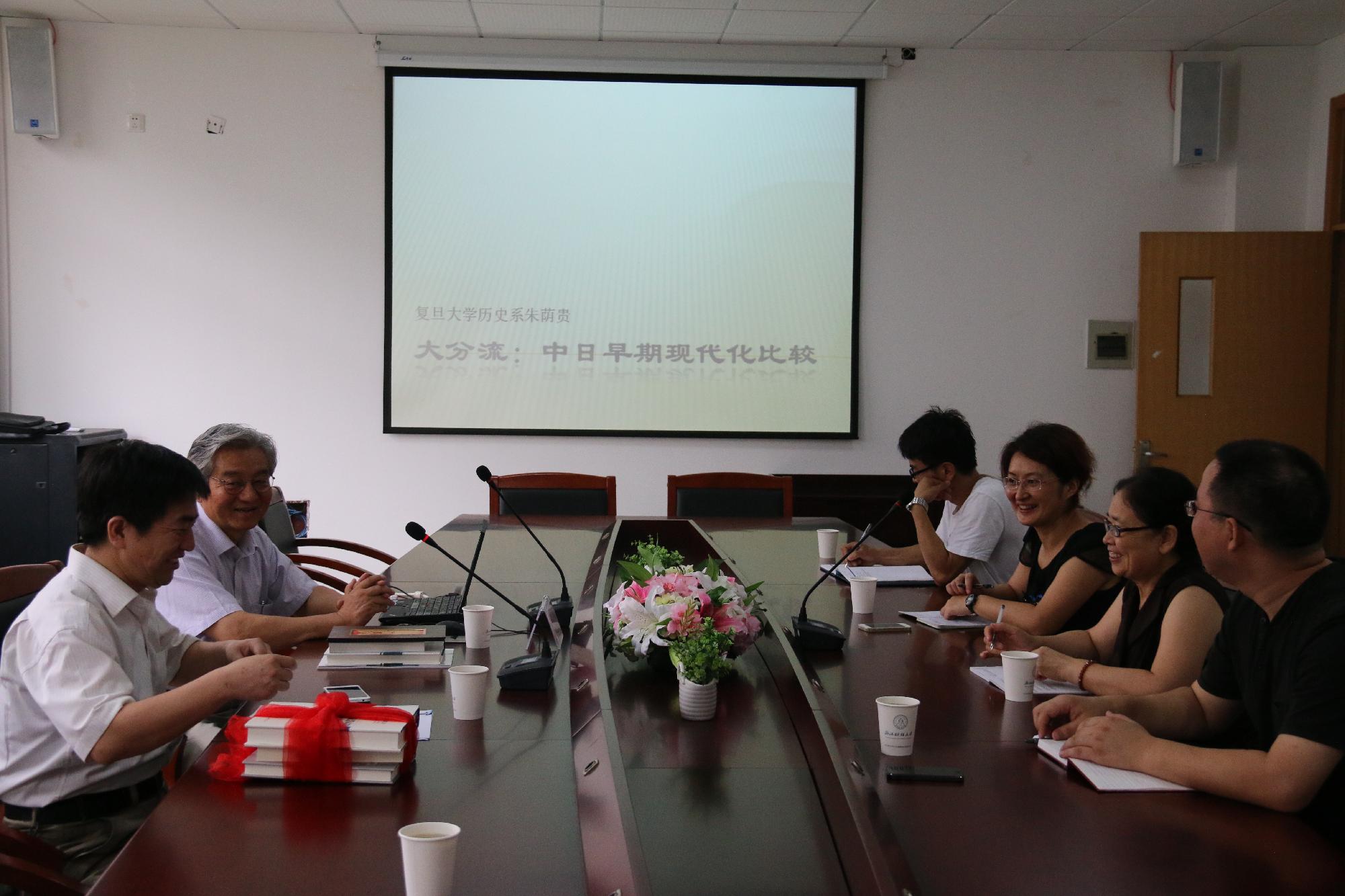 7月1日上午,复旦大学博士生导师朱荫贵教授应邀为我部政府管制思想史课题组的全体老师作了题为“大分流:中日早期现代化比较”的学术报告。报告开始前,王俊豪校长代表学校向朱荫贵教授颁发了浙江财经大学兼职教授聘书,朱荫贵教授也向我校捐赠了其部分研究著作。