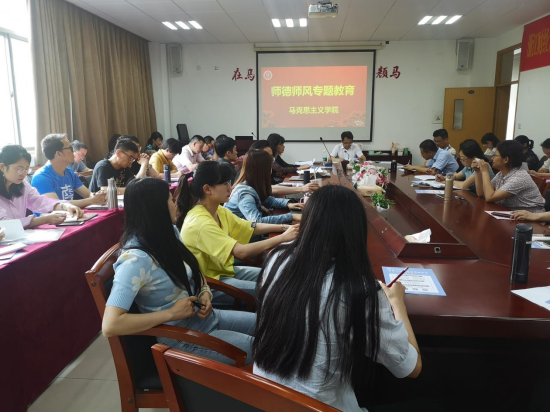 会上,贺武华书记带领全体教职工学习了《关于全面深化新时代教师队伍建设改革的意见》、《新时代高校教师职业行为十项准则》、《教师法》、《教育部对8起违反教师职业行为十项准则典型问题进行公开曝光》等内容,并就加强师德师风建设方面的工作做了动员部署。