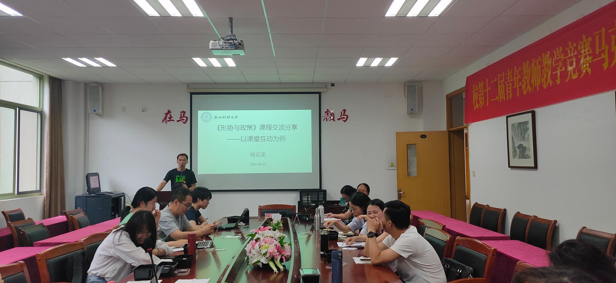 接着,与会教师代表结合自身教学实际,围绕着课程建设、课堂管理、教学方法、理论学习等方面,从发挥学生主体作用、结合专业特点激发学生积极性、结合热点加强教学设计等角度畅谈了自身的教学经验。同时青年教师肖云龙博士作为代表作了“《形势与政策》课程交流分享——以课堂互动为例”的简短分享,他对上好形策课有几点深刻体会,1、充分备课;2、充满情怀;3、充满期待。与会老师纷纷表示,《形势与政策》课程是高校大学生思想政治教育的主渠道,对帮助学生树立正确的人生观、价值观和世界观发挥着重要作用,上好《形势与政策》,是每个任课教师义不容辞的责任。