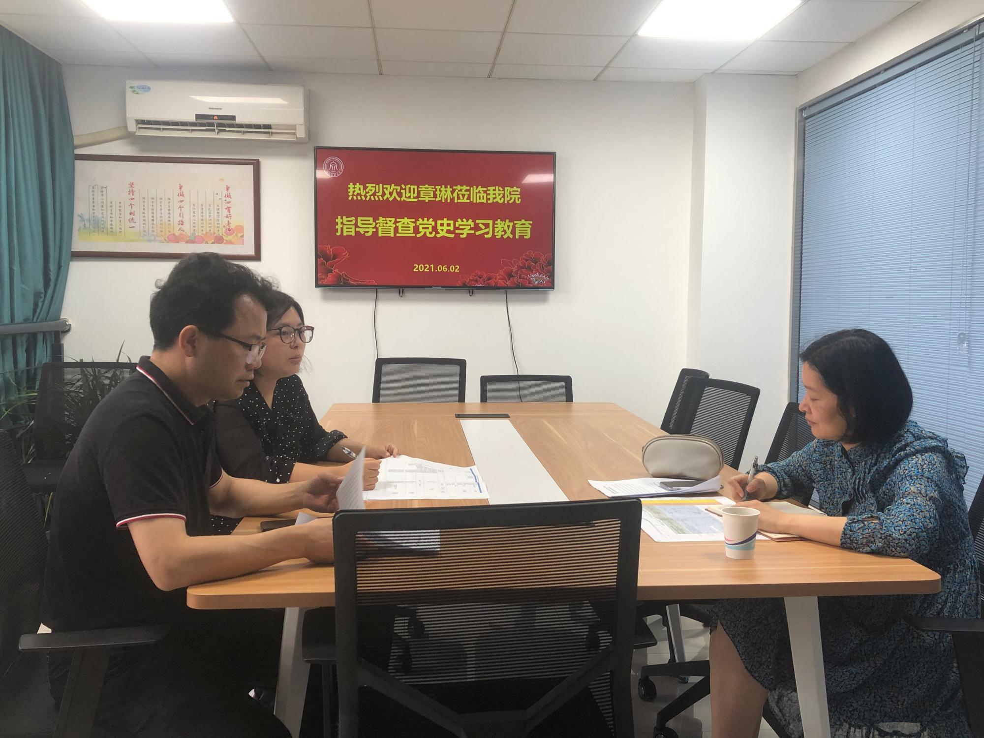 6月2日,学校党史学习教育第三督导组组长章琳莅临直播足球比分 开展党史学习教育督查指导工作。足球比分90 党委书记、院长、党史学习教育领导小组组长贺武华汇报有关情况。