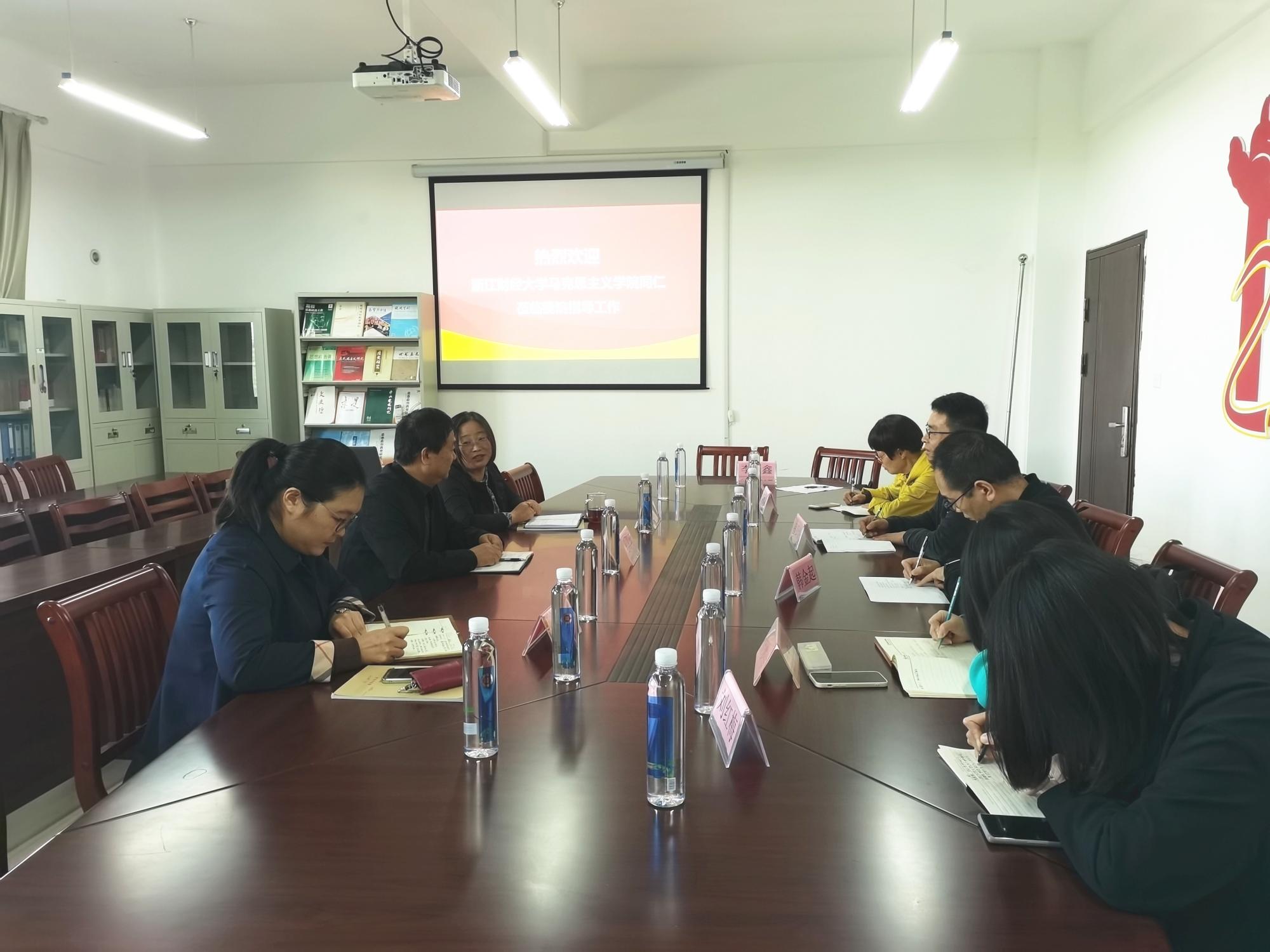 马原理教研室韩跃民、李秋华、韩金起、赵佳花、刘红梅、金梦佳、魏梁钰等老师前往湖州师范大学马院围绕马原理课程的建设和教学活动展开调研交流。湖州师院马院院长吴凡明、副院长李秀娟和马原理教研室主任孙米莉老师分享了课程改革、建设等方面经验。