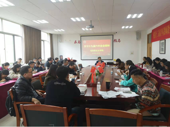 当前和今后一个时期的重要政治任务。全体教职工要第一时间领悟六中全会的核心要义,推动全会精神往深里走、往实里走、往心里走,并且要第一时间将全会精神融入到课堂教学中,贯彻好思政课是落实立德树人根本任务的关键课程作用,传播好的党的思想,引导广大青年学生坚定不移跟党走。