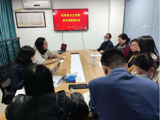 本次教学质量推进会主要是针对一流金课建设,提升思政课教育质量展开讨论。教研室主任和四史课负责人分别介绍了本学期课程进展情况和教学改革情况。大家集体分析了大学生认知的特点,结合教学技术手段发展探索了当代思政课在教学手段和教学内容上的创新方式。与会教师还共同探讨了伟大抗疫精神和感人事迹融入思政课的方式,探索提升思政课温度、深度、亲和度的路径和机制。