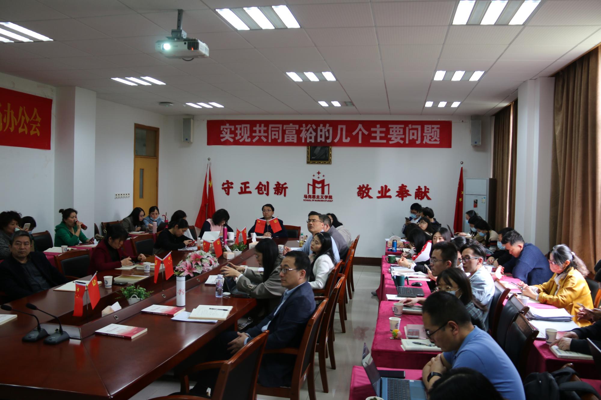 指导工作。辛教授的报告主要围绕“为什么突出强调共同富裕问题”“共同富裕的基本内涵是什么”“实现共同富裕坚持的基本原则是什么”“实现共同富裕具体路径有哪些”这四个问题展开。报告内容高屋建瓴、博大精深,引经据典、聚焦时政,将深厚的理论与生动的实践紧密联系起来,用深入浅出、幽默诙谐的语言把抽象的理论讲得生动、有趣又深刻。现场响起阵阵掌声,线上会议室也讨论热烈。