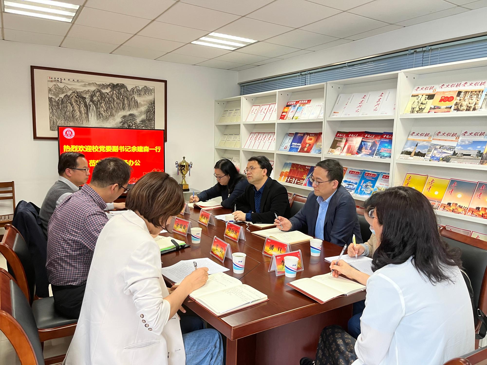 4月21日下午,校党委副书记余建森,党委委员、宣传部部长楼胆群,宣传部副部长毛鸽一行到直播足球比分