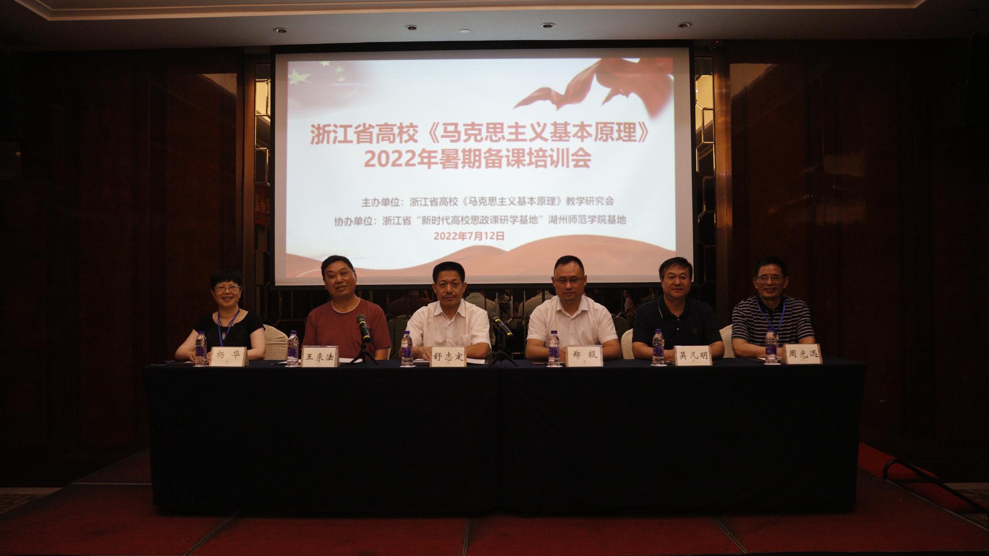 的历史沿革、学科建设等情况。省委宣传部理论处领导郑毅作《当前意识形态领域新形势新问题》主题报告。湖州市教育科学研究中心教研员何振华作《高中思政课程中经济学、哲学相关内容的教学观察》的专题讲座。