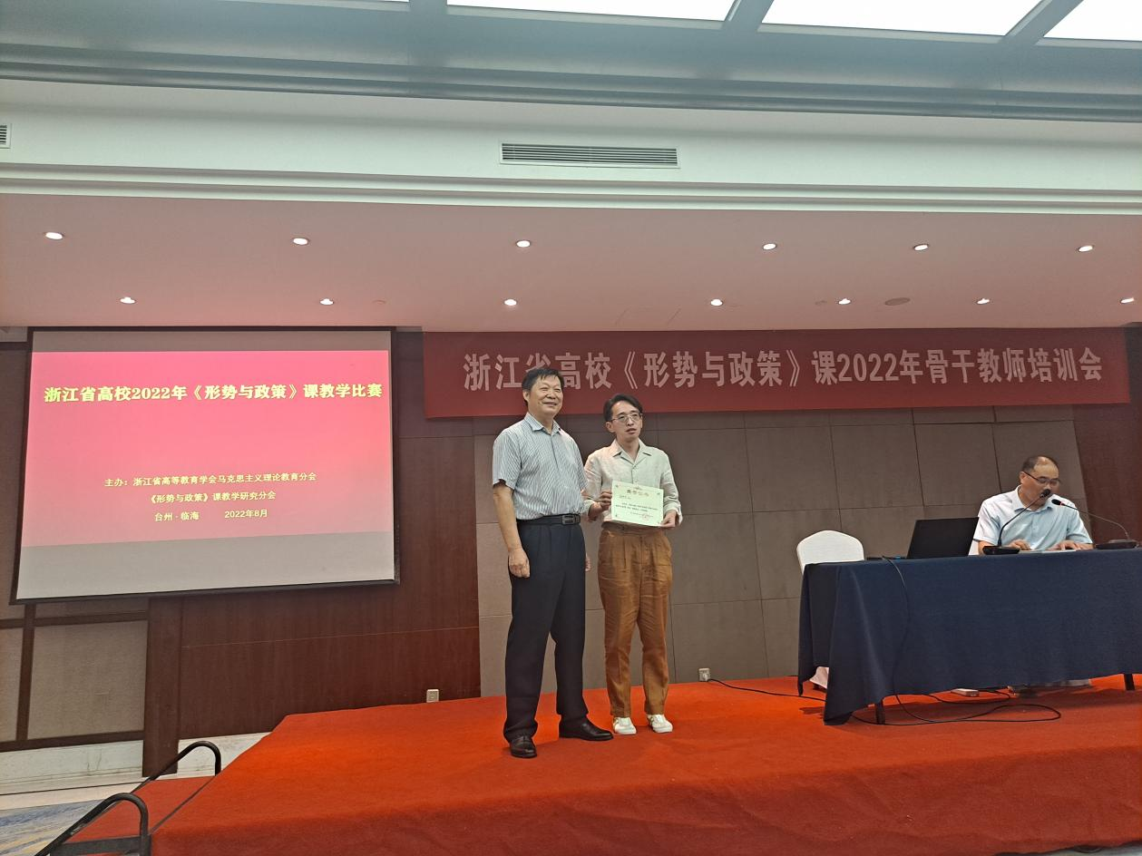 教师参加2022年浙江省高校《形势与政策》课程暑期备课会。本次会议由浙江省高校《形势与政策》课教学研究会、教育部全国高校思政课“手拉手”集体备课中心(浙江大学—浙江省)主办、中宣部《时事报告》杂志社协办。