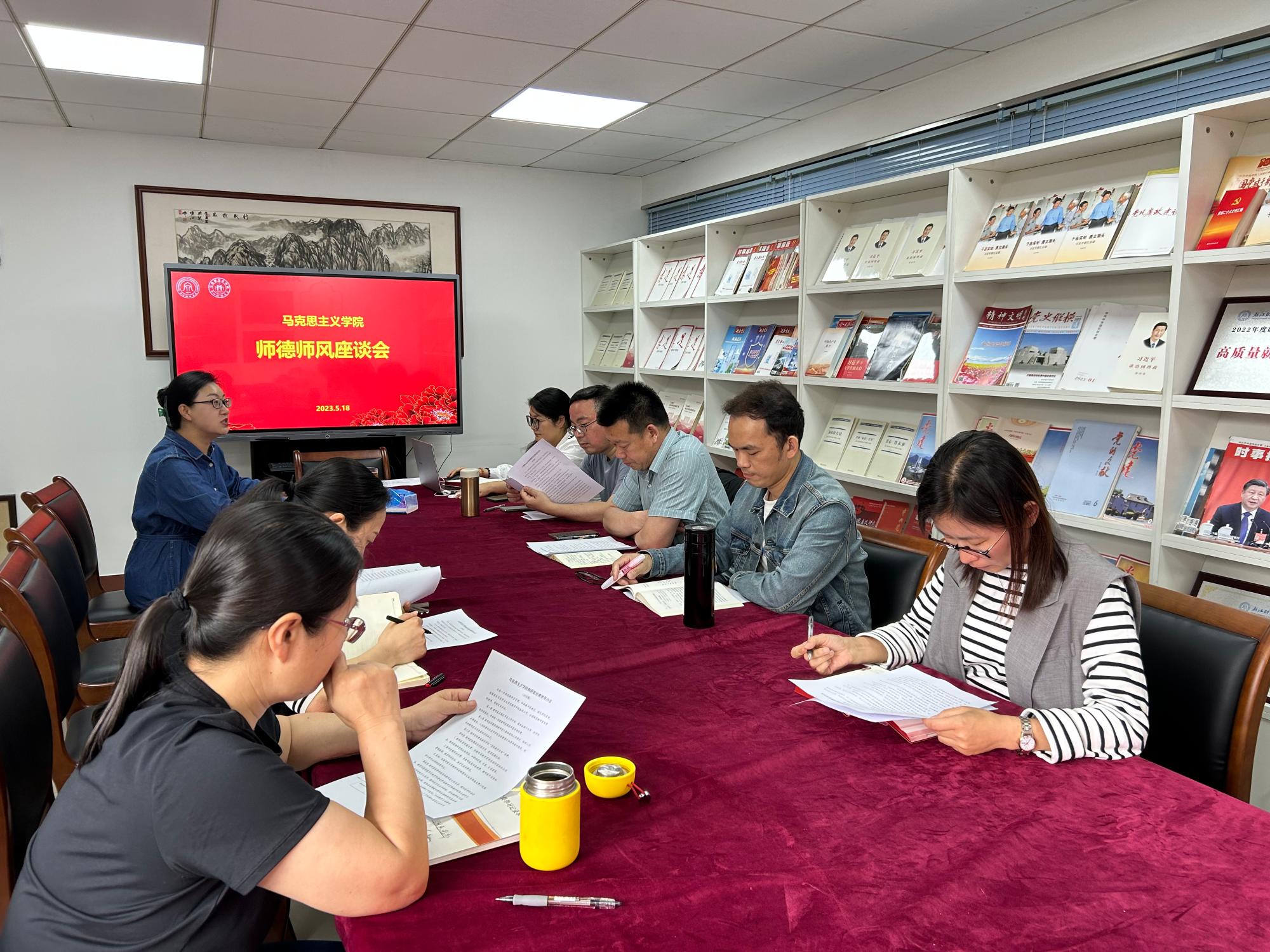 召开师德师风建设座谈会。院纪委书记邢雁欣、纪委成员、教研室主任、教师党员代表参加座谈会。