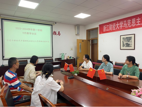 习近平新时代中国特色社会主义思想概论教研室于2023年9月9日召开新学期第一次教学会议,会议由教研室主任潘旦老师主持。