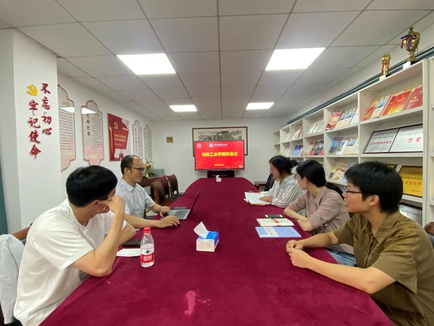 9月14日下午,马克思主义学院分工会工会委员在学院召开了2023年新学期初工作会议,讨论秋学期校工会和分工会的工作安排。会议由分工会主席肖云龙主持,副主席徐晓燕、委员宋维维、李芳园、王江红、周浩出席了会议。