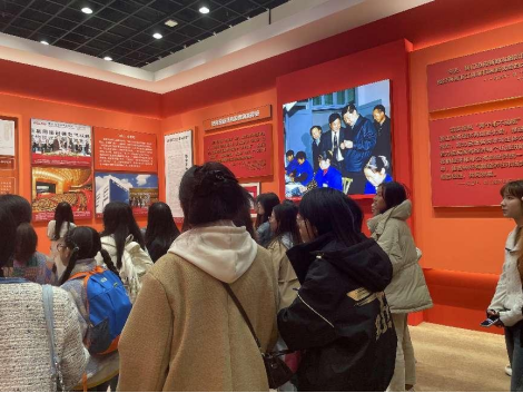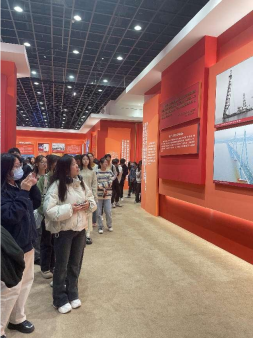 教师邢雁欣、朱巧香带领200名大学生赴浙江展览馆参观“大道之行——‘八八战略’实施20周年大型主题展览”。