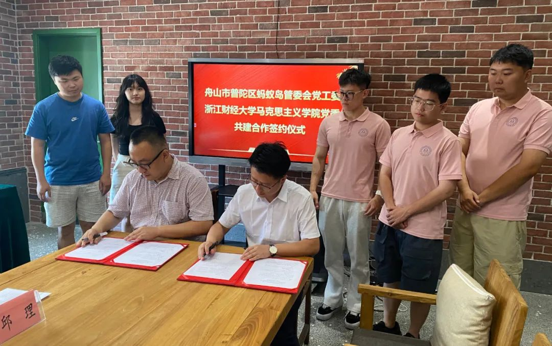 双方在签约仪式上就开展院地党建联建、建立教学实践基地、开发“蚂蚁岛精神”研学项目等八个方面达成共识,并加快推进项目落地。