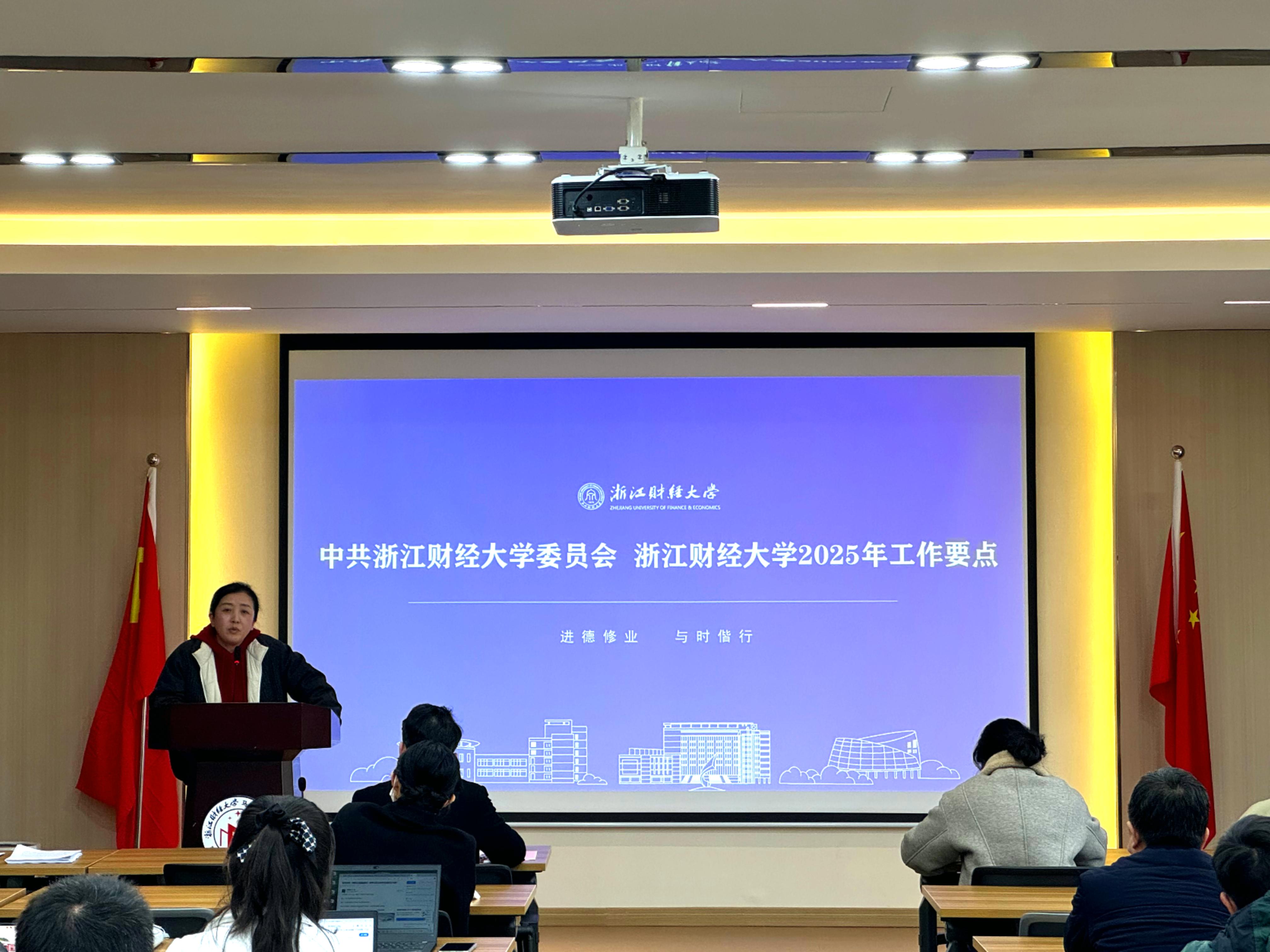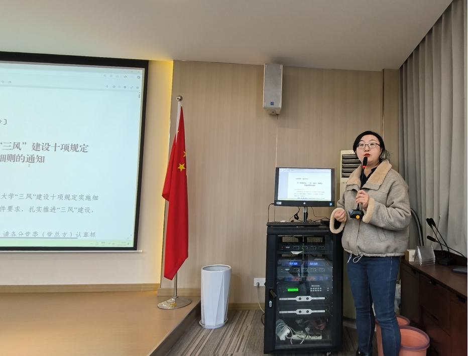 副院长邢雁欣现场领学《浙江财经大学“三风”建设十项规定》《浙江财经大学“三风”建设十项规定实施细则》等文件,并从思政课堂管理、听课评课、智慧化教学、教学实践、文化建设等五个方面对直播足球比分