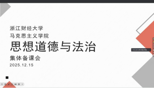 12月15日,浙江财经大学马克思主义学院《思想道德与法治》教研部举行集体备课会。本次会议由杨晓帆老师主持,教研部全体教师围绕近期教学工作的优化与题库完善进行了深入探讨与交流。