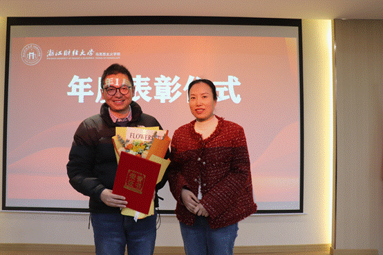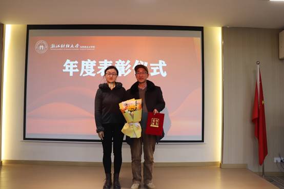 为表彰先进、树立榜样,进一步激发全院教职工干事创业的责任感与使命感,大会举行了隆重的年度表彰仪式。本次表彰紧扣党建创新、教学攻坚、科研攀峰三大核心维度,精准遴选先进典型:教工第二党支部荣获“党建工作突出贡献奖”;邢雁欣、胡洪彬、冯庆旭、王亚丽、李阿慧、冯侃荣获“科研突出贡献奖”;何历宇、曾骊、程能的荣获“教学突出贡献奖”。学院党委书记高燕、副院长潘旦(主持工作)、副院长邢雁欣分别为获奖集体和个人颁发荣誉证书。