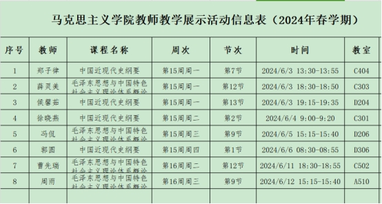 为进一步提升思政课教学质量,打磨教学技能,展示教学风采,加速我院教师队伍建设,推进思政课教学提质创优,现于本学期第15-16教学周开展“思政课课堂教学展示活动”,现将有关事项通知如下: