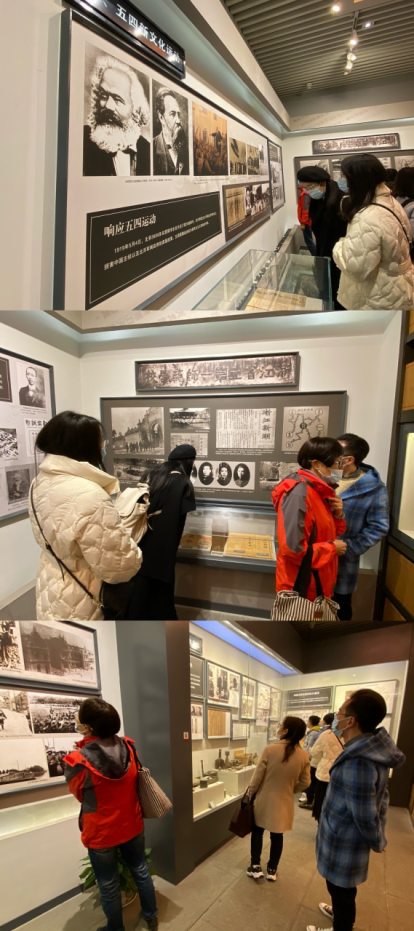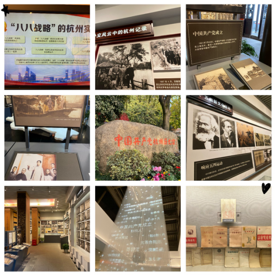 教工第一党支部前往中国共产党杭州历史观进行学习参观。刚一进馆,就看到了一块显眼的透明幕布,上面显现出具体时间以及历史事件,例如,中国共产党成立、陈望道、中共杭州小组成立、大革命高潮、杭州解放……我们从起点“五四新文化运动”这一单元开始参观,从五四新文化运动的黑白图片中,我们仿佛听到了北京当时3000多名爱国学生的呐喊,进一步感受到了它作为新民主主义革命开端的重要意义。顺着五四运动的图片展示窗,我们来到了马克思主义在中国的传播形式,其中之一就是马克思经典著作《共产党宣言》的译介工作,从中我们再次回顾了陈望道先生和他由于危急情况下将《共产党宣言》著作翻译成《共产党宣言》的故事,也再次体会到该著作被译介到中国来对知识分子和无产阶级产生的深远影响。然后大家参观了中国共产党在浙江嘉兴南湖红船上召开一大时的资料和图片,充分认识到中国共产党的成立和一大召开的重大历史意义。在接下来的第二单元,大家参观学习了杭州地方党组织领导广大党员,进步分子与国民党反动派的白色恐怖开展艰苦斗争,解放杭州的艰苦战斗等多个可歌可泣的故事。大家带着凝重的眼光和心情耐心参观了杭州地方党组织的抗争图片、物品和材料,一直参观完侵浙日军1945年9月4日在富阳宋殿村投降,大家的表情才稍微没有那么凝重。再接着就是学习新中国成立后巩固新生人民政权的斗争、恢复国民经济、探索社会主义建设阶段、新中国外交风云中的杭州记录等单元栏目。最后从中国特色社会主义道路的杭州实践,从“八八战略”的杭州实践等一系列丰富的图文资料中认识到今天的中国和杭州取得如此丰富实践成果的来之不易。参观完整个历史馆后,支部党员同志纷纷表示,要把这次参观内容与马克思主义基本原理中的相关知识结合起来,融入到课堂的教学中,与学生一起温习中国共产党的历史与杭州地方实践以及中国特色社会主义道路浙江实践之间的内在联系,做到理论与实践、历史与逻辑的具体的统一。