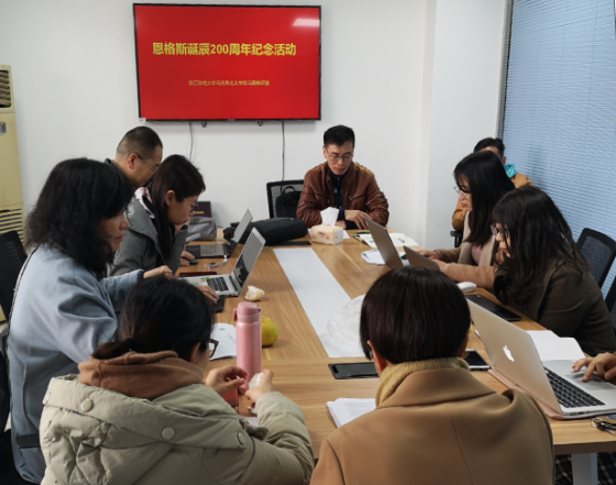 随后,肖云龙老师谈了学习恩格斯原著的感想:恩格斯在人格上是伟大的,值得我们当代每一个人好好学习;同时,恩格斯给我们的一个重要启示就是应当重视劳动对当代社会的作用。另外,刘红梅老师介绍了恩格斯的文化思想和新闻思想,这一思想为马克思主义的新闻观,以及后来党报的产生奠定了基础,同时也促进了新闻业的积极发展;李金鑫老师通过学习恩格斯《家庭、私有制和国家的起源》一书,加深了自己对于未来共同体和共产主义的深刻认识;金梦佳老师从家庭、亲缘关系,赵佳花老师从女性解放的视角介绍了恩格斯的思想并提出了自己的理解与认识。