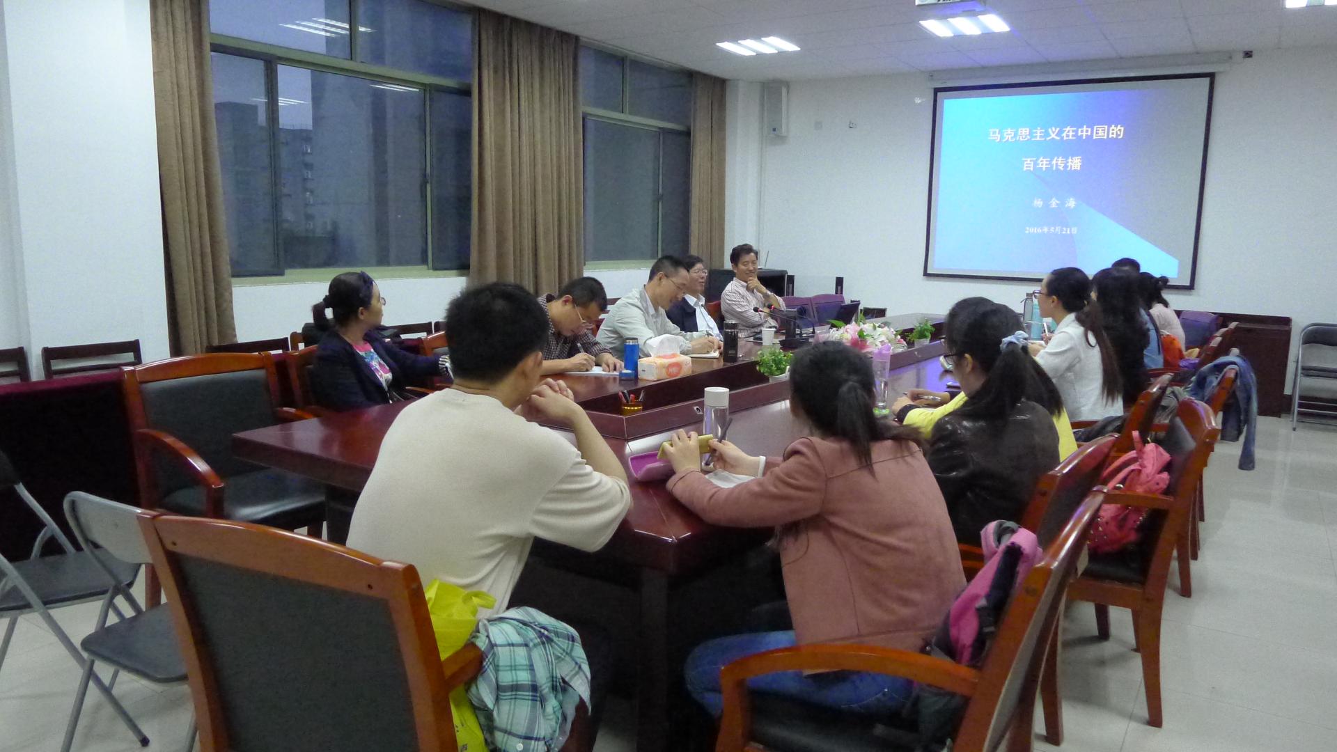 讲学。以“马克思主义在中国的百年传播”为题,作了关于马克思主义传播史方面权威、细致、生动的报告。何历宇教授主持,教师代表及研究生参加本次讲座。