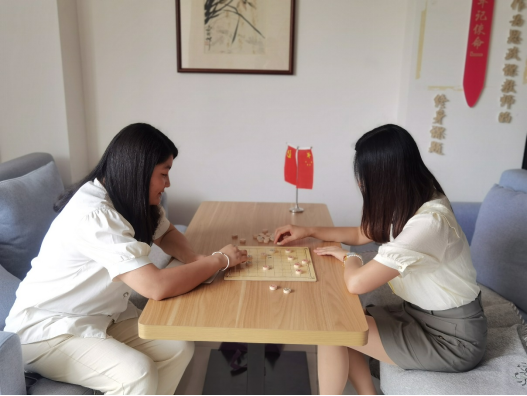 活动在马克思主义学院五楼休闲区进行,设有中国象棋、跳棋、飞棋、五子棋等棋类交流项目。