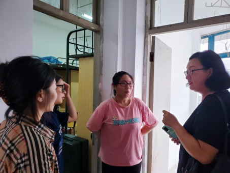 下午所有新生报到完毕后,学院副书记、副院长刘向前,副院长邢雁欣走访了新生寝室,了解学生报道和住宿情况。期间,各位老师与新生们亲切交流,鼓励新生在研究生阶段努力学习,向自己树立的目标迈进。 (摄影:夏田)