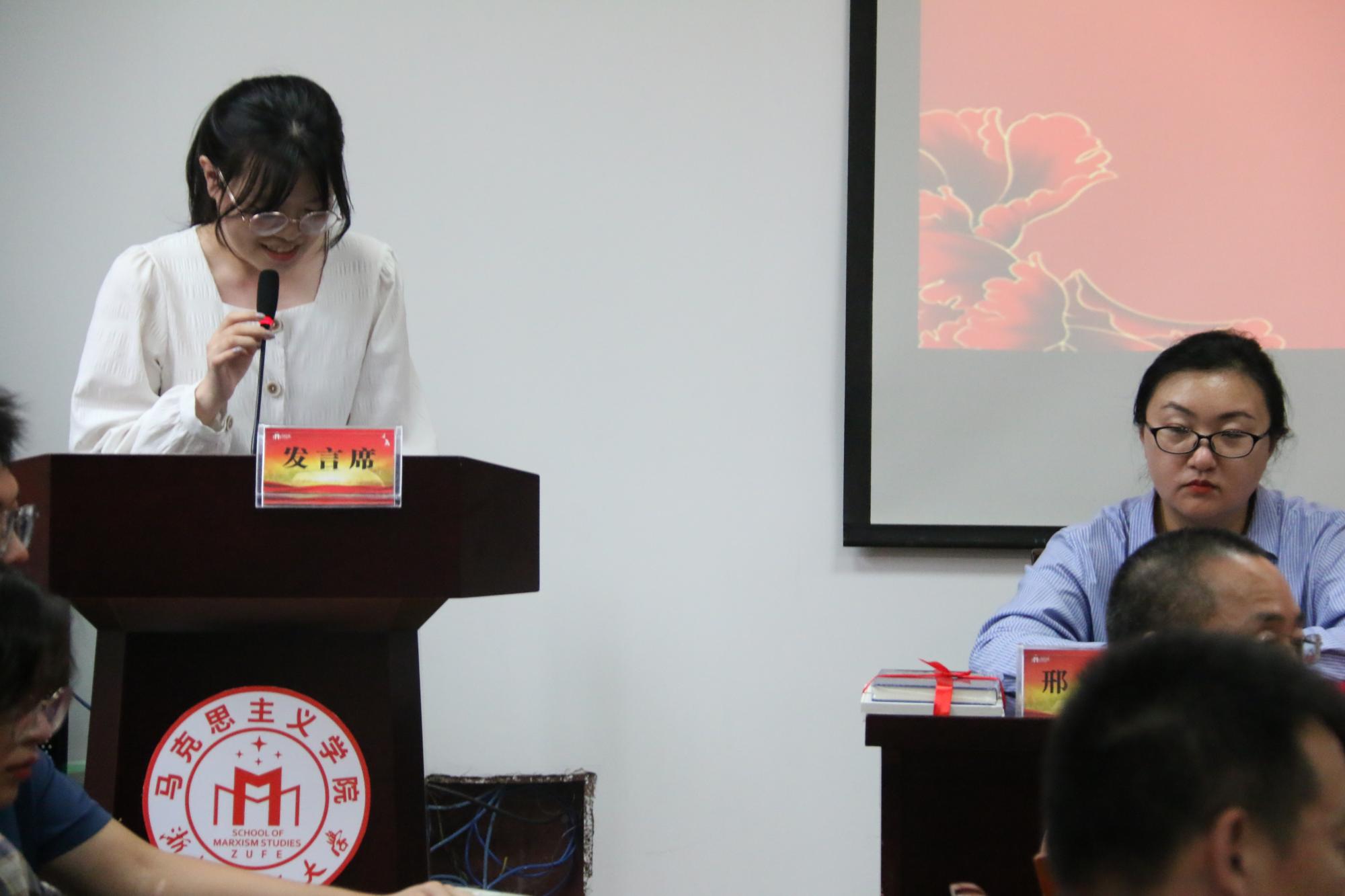会议开始,李金鑫副教授代表硕士生导师发言。首先,她代表马克思主义学院全体硕士生导师对研究生新生表示了欢迎,其次,她从“求同存异做自己”这个主题出发,寄语同学们要做到了解专业、激发热情和学会对话。
