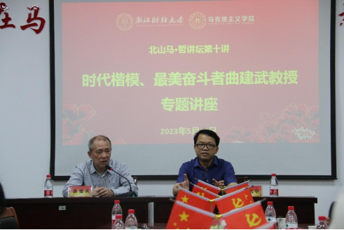 5月16日下午,“北山马·哲讲坛”第十讲开讲。“时代楷模”、全国道德模范、全国“最美奋斗者”、全国优秀教师,大连海事大学教授、博士生导师曲建武教授走进马克思主义学院,为全体师生作专题讲座。讲座由马克思主义学院院长、教务处处长贺武华主持,党委书记刘向前、副院长邢雁欣、学院部分青年教师和全体研究生参加。