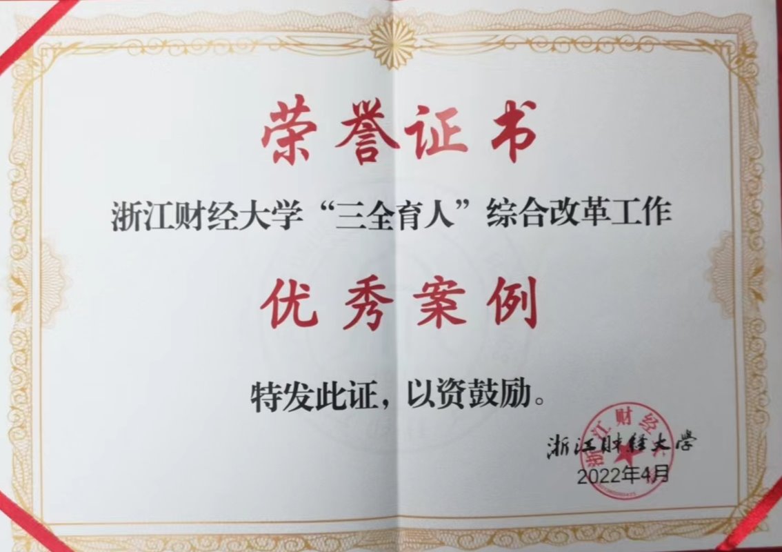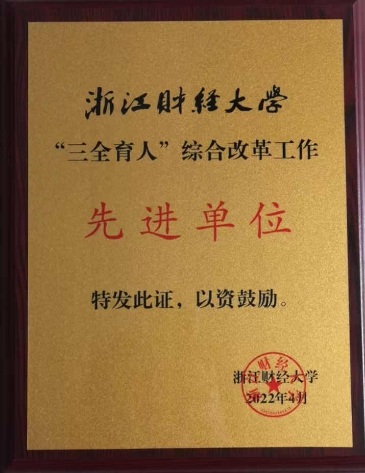 近日,学校召开“三全育人”综合改革经验交流暨工作推进会,我院“抗疫”艰难时刻名师工作室在行动、从“大水漫灌”到“精准滴灌”打造思政课程育人新格局、《思想道德与法治》课程“三全育人”改革的探索与实践、马院“三地一窗口”思政实践教学基地—安吉鲁家村案例、“德育心育相结合”大学生心理育人工作探索等5个案例入选学校“三全育人”综合改革优秀案例汇编,其中“‘抗疫’艰难时刻 名师工作室在行动——浙江财经大学华正学名师工作室疫情期间教书育人工作纪实”入选2021年《浙江省高校“三全育人”综合改革理论与实践丛书——融合与重构》,“《思想道德与法治》课程“三全育人”改革的探索与实践”在学校“三全育人”综合改革经验交流暨工作推进会上进行了“优秀案例”展示,学院被授予“三全育人”综合改革先进单位。
