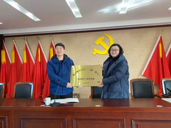 12月25日,浙江财经大学马克思主义学院与海宁许村镇李家村“三地一窗口”思政实践育人基地签约授牌仪式在李家村村委会举行。李家村书记费杰、许村镇党委宣传委员陆凛、马克思主义学院副院长邢雁欣共同为基地签约挂牌。教学秘书王瑜、杨晓帆博士及我校45名同学参加了本次实践教学活动。 签约挂牌仪式...