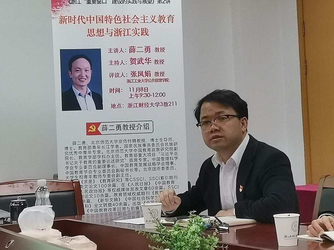 11月8日上午,马克思主义学院在3号楼211会议室举行“新时代中国特色社会主义教育思想与浙江实践”学术交流报告与录制工作。这是我院承担省社科联之江青年社科学者学术交流论坛课题的第2讲。本讲主讲嘉宾为教育部长江学者青年学者、北京师范大学中国教育政策研究院副院长、京师特聘教授、博士生导师...