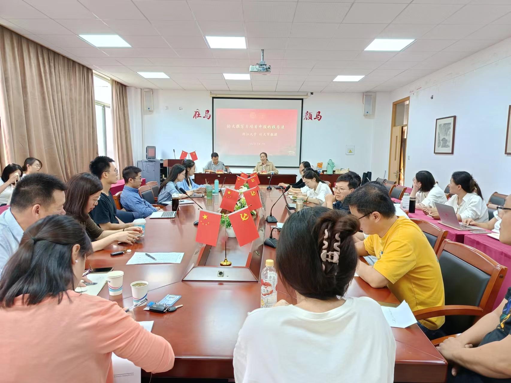 为了提升我院青年教师科研能力,学院于10月19日下午开展教师科研能力提升培训系列讲座第二场活动。本次活动邀请浙江大学付文军教授来我院做题为“论文撰写与项目申报的‘技’与‘法’”的学术讲座,讲座由潘旦教授主持。