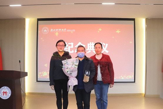 现场播放的荣休主题视频,串联起华正学教授数十年执教生涯中的珍贵瞬间,温情画面引发全场共鸣。教职工代表登台致敬,深情表达将接续前辈初心、传承教育薪火的坚定信念。华正学教授动情回顾了自己的执教历程,字字句句饱含对教育事业的热爱与对学院发展的牵挂,并承诺将继续为青年教师传经送宝、为学院发展建言献策,永葆育人初心。