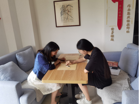 活动在马克思主义学院五楼休闲区进行,设有中国象棋、跳棋、飞棋、五子棋等棋类交流项目。