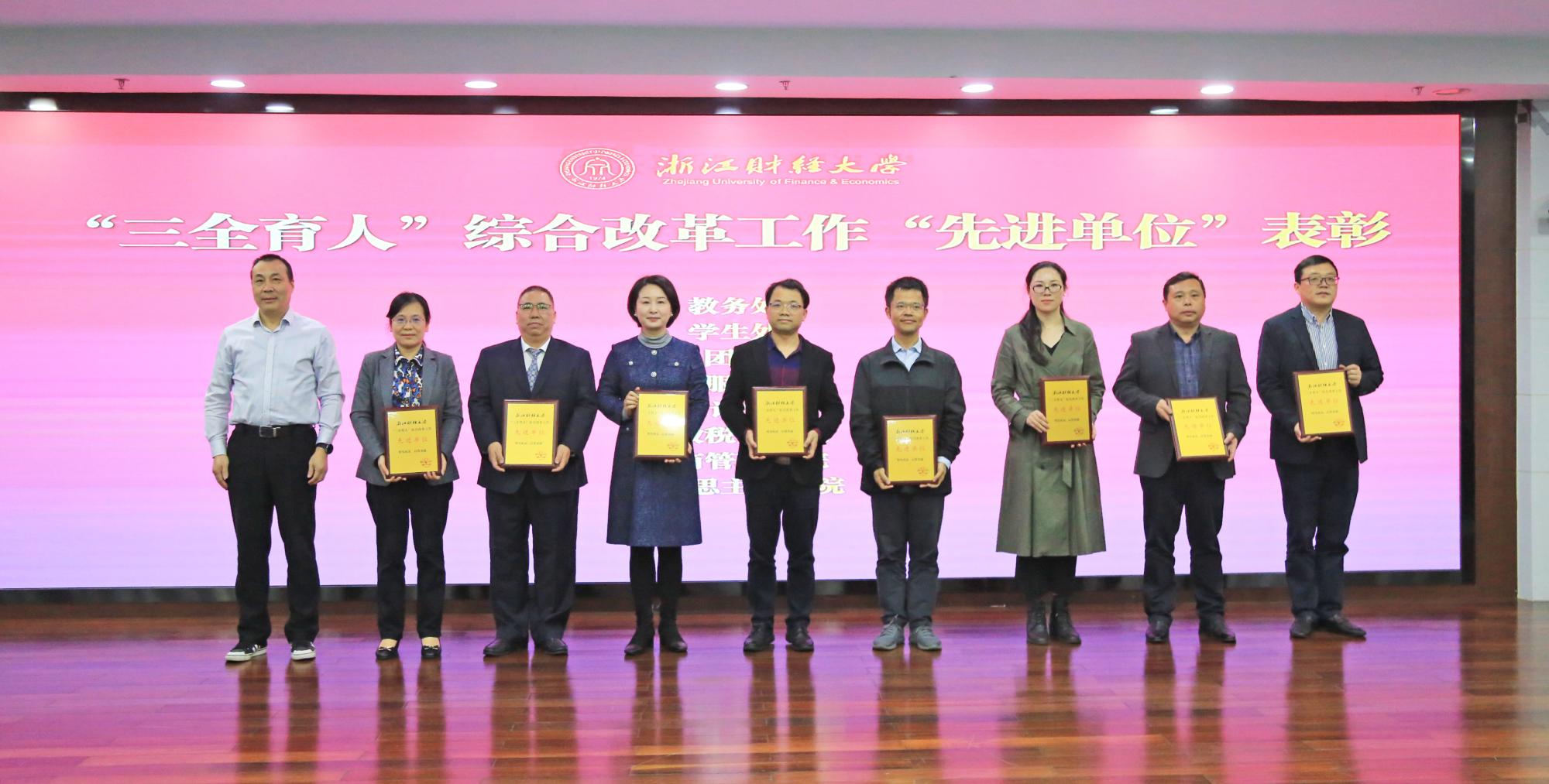 近日,学校召开“三全育人”综合改革经验交流暨工作推进会,我院“抗疫”艰难时刻名师工作室在行动、从“大水漫灌”到“精准滴灌”打造思政课程育人新格局、《思想道德与法治》课程“三全育人”改革的探索与实践、马院“三地一窗口”思政实践教学基地—安吉鲁家村案例、“德育心育相结合”大学生心理育人工作探索等5个案例入选学校“三全育人”综合改革优秀案例汇编,其中“‘抗疫’艰难时刻 名师工作室在行动——浙江财经大学华正学名师工作室疫情期间教书育人工作纪实”入选2021年《浙江省高校“三全育人”综合改革理论与实践丛书——融合与重构》,“《思想道德与法治》课程“三全育人”改革的探索与实践”在学校“三全育人”综合改革经验交流暨工作推进会上进行了“优秀案例”展示,学院被授予“三全育人”综合改革先进单位。
