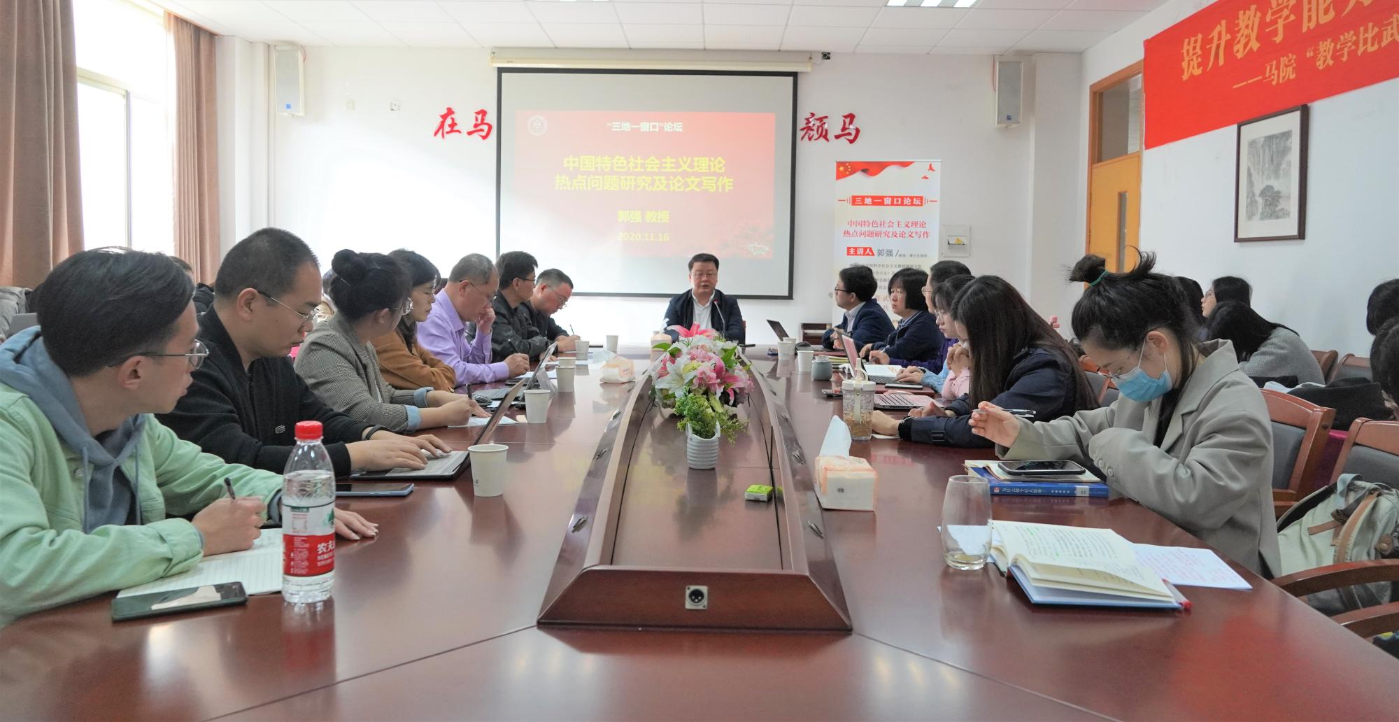 11月16日上午,《科学社会主义》杂志总编辑,中共中央党校郭强教授为马克思主义学院师生作题为《中国特色社会主义理论热点问题研究及论文写作》的学术论坛。此次论坛在马克思主义学院211会议室举行,由我院党委书记、院长贺武华主持,学院无课师生参加。郭强教授从十九届五中全会的视角出发,向在...